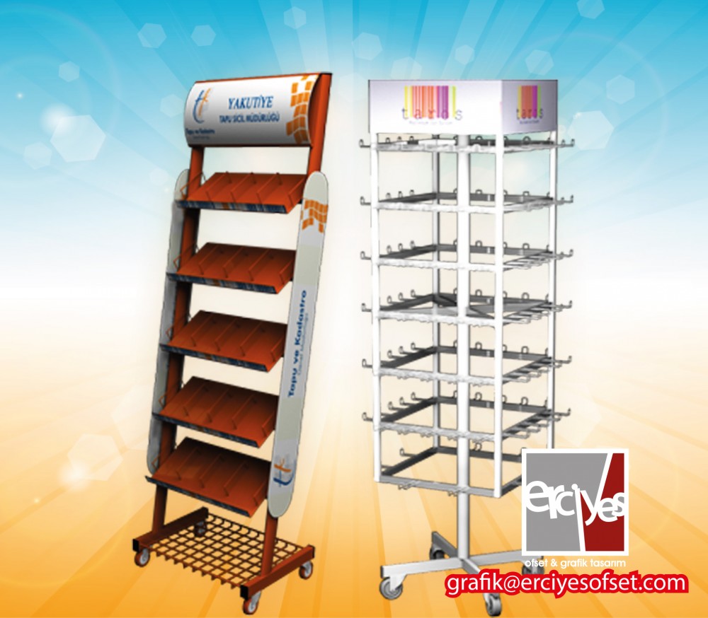 Ayaklı, masastü, tel sepet, asalak, orta alan, modüler, ahşap v tel stand tasarımını ve üretimini yapıyoruz.
